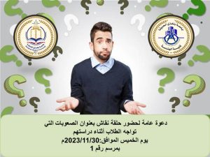 حلقة نقاش بعنوان الصعوبات التي تواجه الطلاب أثناء دراستهم