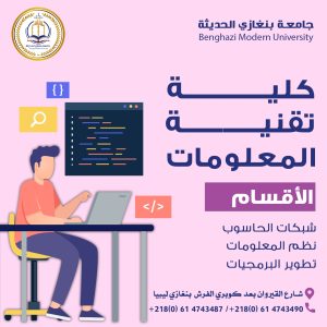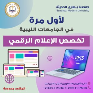 تعلن جامعة بنغازي الحديثة عن البدء في القبول و التسجيل المبدئي للفصل